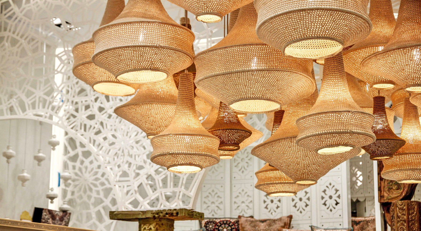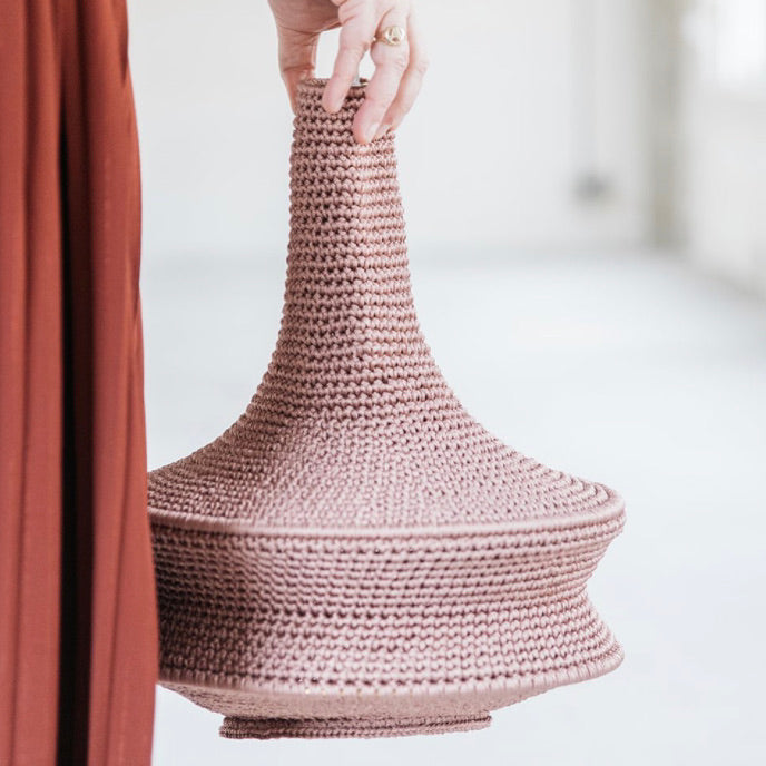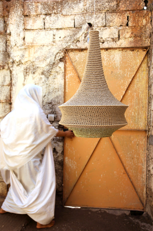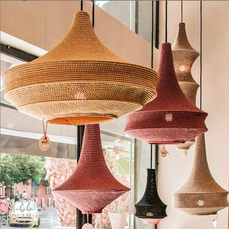 On the road to the Atlas Mountains at the far reach of Marrakech rests a humble village where a small community of women handcraft our crochet pendant lights in their homes. Crochet is a craft passed on through generations of women in this village.